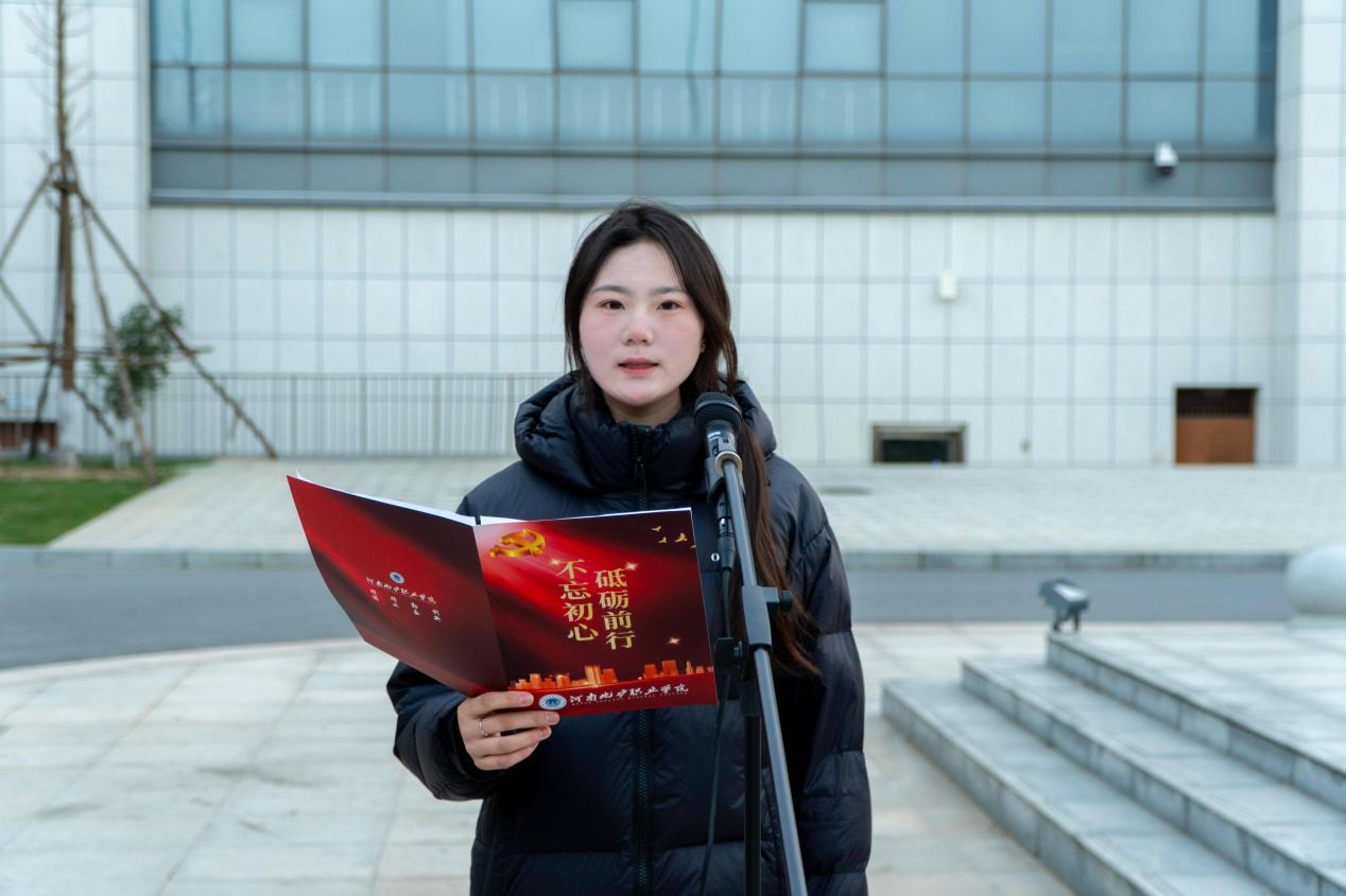 随后,教师代表王云鹤从投身学校发展、工作能力提升和贡献青春力量三个方面与现场的教师和学生进行分享,勉励广大学生珍惜大学时光,努力学习专业知识,培养综合素质,坚定的信念,用实际行动诠释“承前启后担使命,继往开来绘蓝图”的精神内涵。